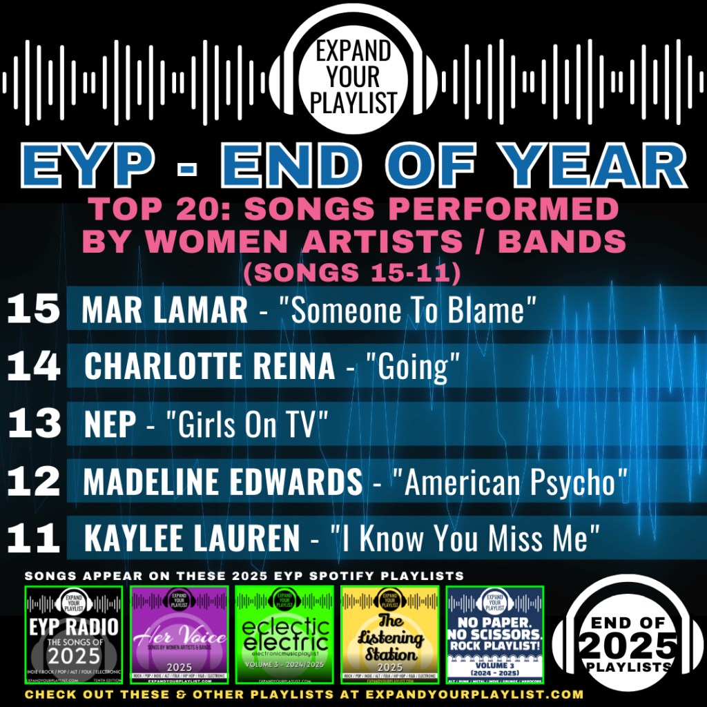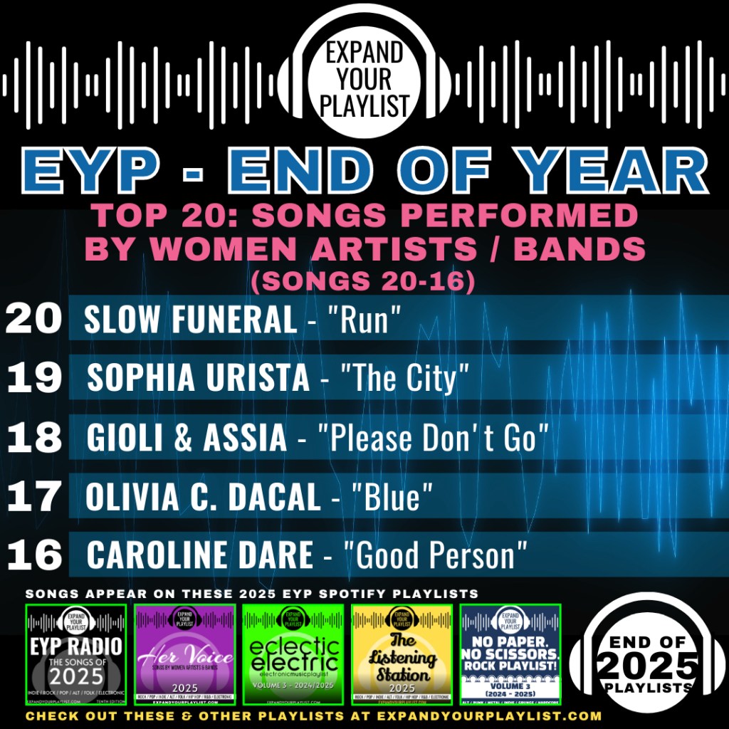 Join us as we run down our Top 20 songs performed by Women Artists and Women led bands, taken from our various playlist music series in 2025 on EYP! This could have easily been a Top 100 list, but we decided to keep it at 20. Follow these amazing musicians in hope that they help you Expand Your Playlists! The links below are connected to their Instagram pages. Music by…